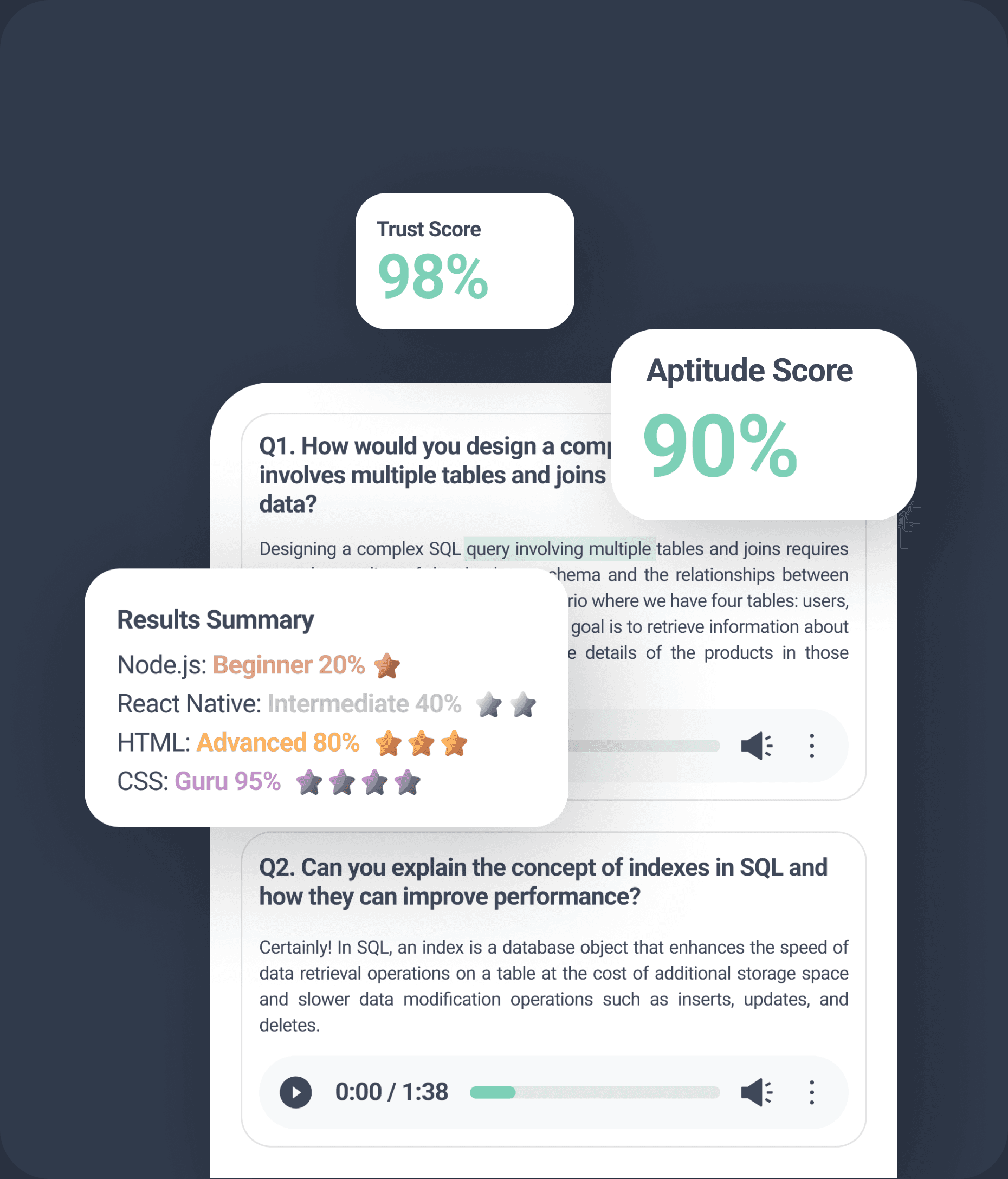 Conduct intelligent interviews with full transcripts and detailed candidate summaries powered by advanced AI