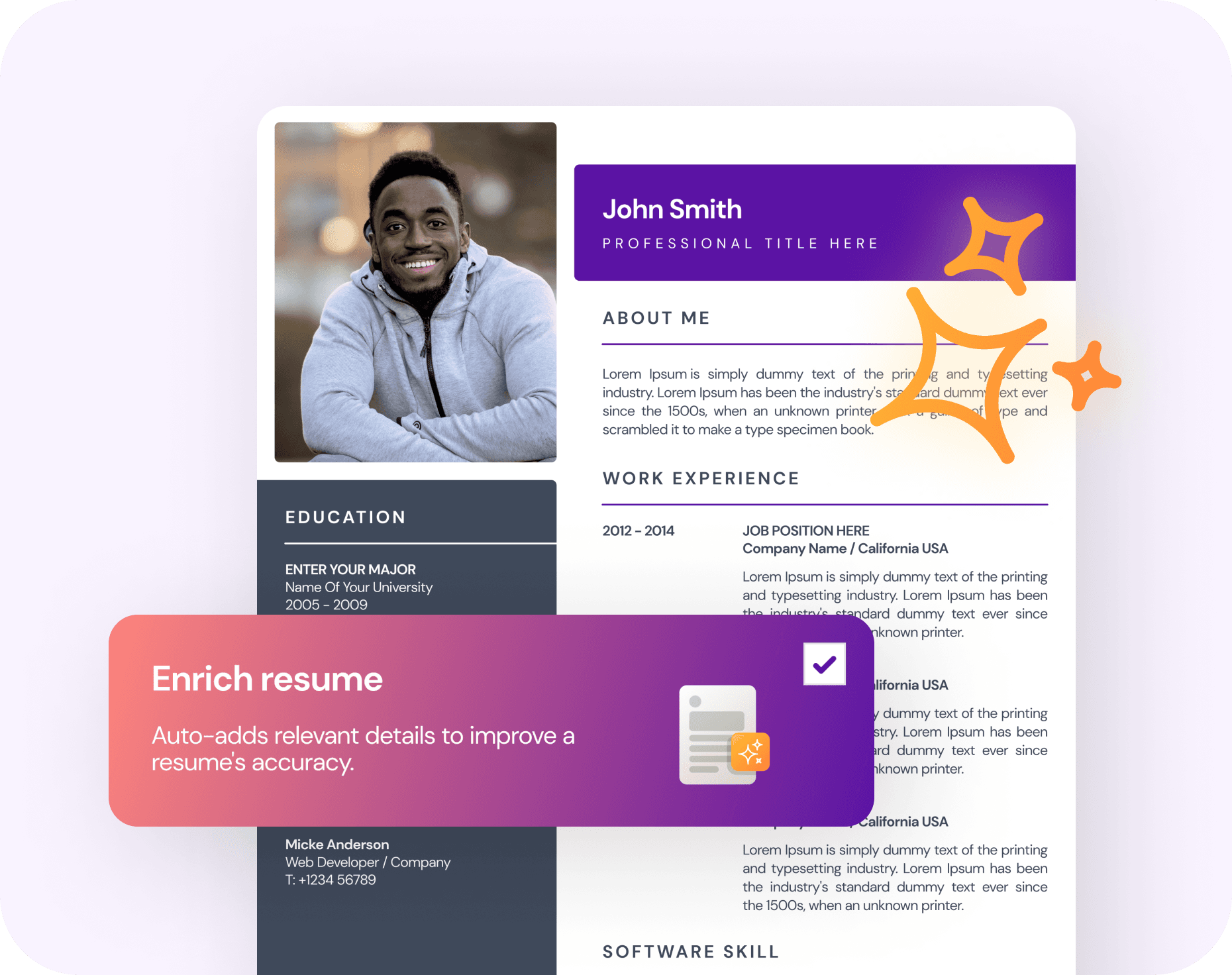 Tailor your resume to specific job openings. Our resume enrichment tool helps you optimize your content, ensuring accuracy and alignment with the positions you're aiming for.