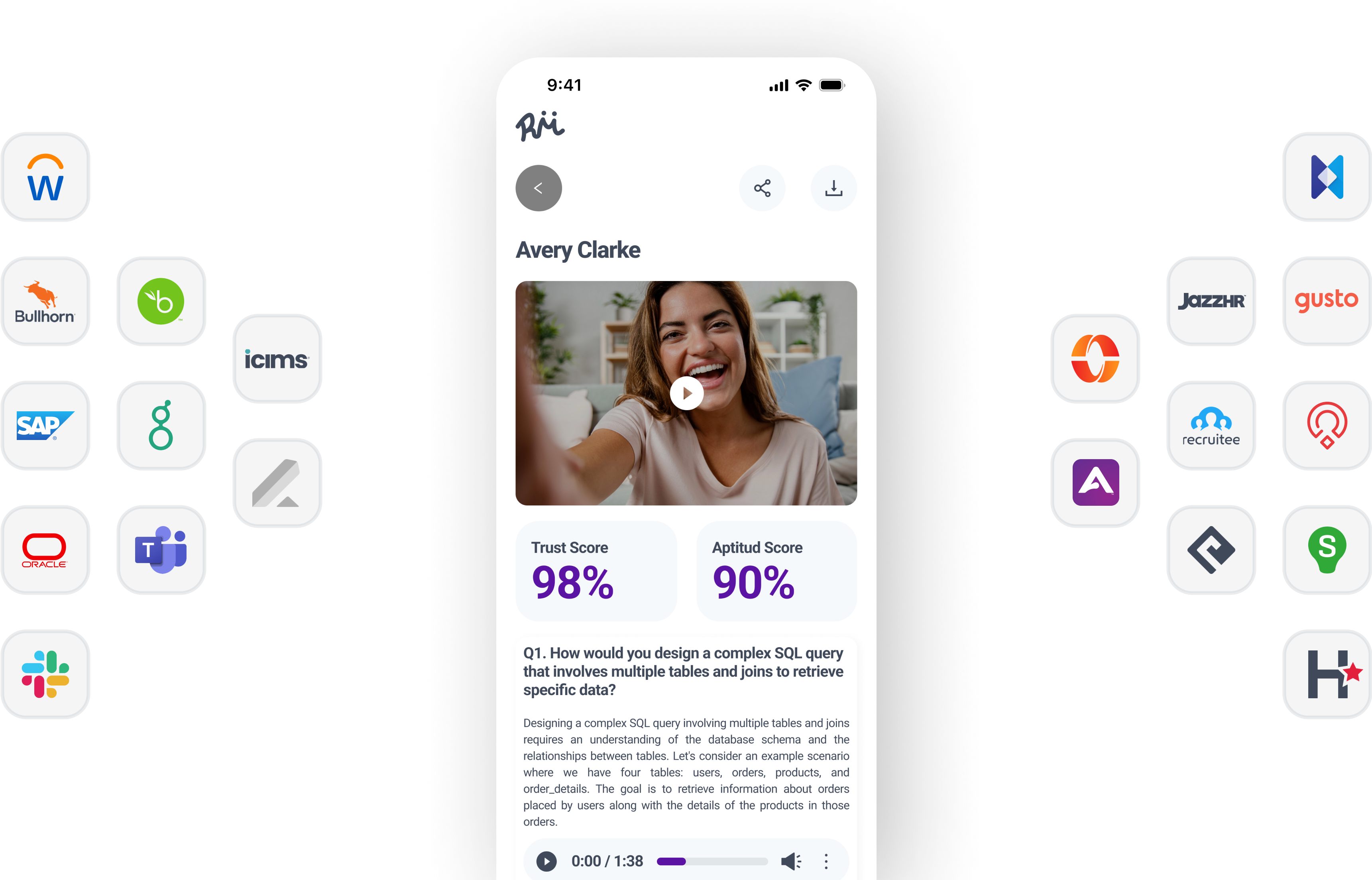 Sync interview data seamlessly across your ATS and HR platforms with RightMatch AI. Integration extends to leading systems like Workday, SAP SuccessFactors, Oracle Taleo, Bullhorn, and more, as well as collaboration tools such as Microsoft Teams and Slack. Simplify your recruitment and enhance HR workflows with advanced automation.